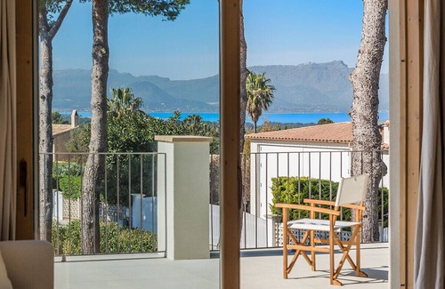 El interior está cuidadosamente diseñado, con todas las habitaciones con grandes ventanas o puertas francesas, lo que permite un montón de luz del sol y preciosas vistas sobre el jardín. El amplio salón/comedor y la cocina, que han sido equipados con muebles y electrodomésticos de alta gama, ocupan la planta baja elevada. Estas áreas tienen puertas a la gran terraza con sus impresionantes vistas sobre la bahía de Pollensa y las montañas más allá.