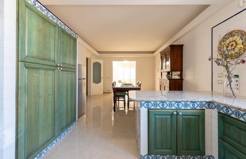 The beautiful masonry kitchen features unique and colourful majolica tiles which make the whole cooking experience a full immersion in the Sicilian culture. You can enjoy your meals in the kitchen inside or in the beauty of the garden where there is an additional open-air kitchen and a barbeque.