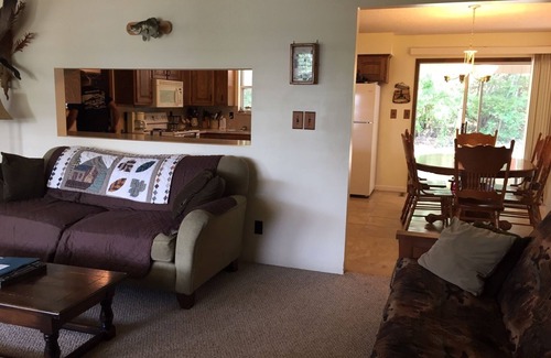 La casa está cómodamente asentada en una cala privada lejos del ajetreo del tráfico y el ruido. La propiedad desciende suavemente hacia el lago. Spec's Place es espacioso y confortable. La cocina se sienta fácilmente seis en la mesa del comedor y cuatro en la barra. Se proporcionan platos y condimentos junto con una parrilla de gas y mesas de picnic. No se moleste en discutir quién va a lavar los platos porque un lavavajillas está esperando todos esos platos sucios.