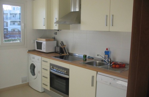 Una hermosa piscina Apartamento en la planta baja (fase 1) con un pequeño jardín privado. Dos habitaciones dobles ofrecen espacio para dormir para cuatro adultos y un sofá-cama para alojar cómodamente miembros más jóvenes de la familia. Ropa de cama y toallas. El baño tiene bañera y ducha, lavabo, inodoro y bidé. Se proporciona una cocina totalmente equipada, con horno y vitrocerámica, lavadora, lavavajillas, nevera-congelador. 32 "TV con canales por cable y wi-fi gratuito. El salón se abre a una terraza de baldosas con con mesa y sillas de patio y un pequeño jardín que da acceso a un complejo de piscina fabulosa, con piscinas que van desde kiddies piscina infantil (cerca de 1 pie máx) para una familia de relax de la piscina (aprox 5 pies) y una piscina más profunda de 6 pies para los nadadores. Oportunidad ideal para reservar dos apartamentos para grupos grandes. Todo el complejo está construido alrededor de un 18 hoyos, par 72 del campo de golf. Se proporciona seguridad las 24 horas y se pide a los visitantes a registrar su vehículo, a la llegada. Una zona deportiva y un montón de chiquillos juegan áreas aseguran que hay actividades para todas las edades. La casa club de golf cuenta con bares y un restaurante, además de un gran supermercado atiende a las necesidades diarias de la familia. El pueblo de Sucina - 5 minutos - es una mezcla de los residentes tradicionales españoles y expatriados. Muchos bares y restaurantes para atender todas las necesidades. Bares tienen Sky TV y el personal local de usar. GOLF; Hacienda Riquelme es un campo de golf de par 72, una de 6 dirigido por IRM, a 15 minutos en coche. Murcia es la capital del golf de España. La primavera y el otoño son las estaciones ideales para los golfistas con temperaturas por lo general a mediados de la década de los 20. Las 6 Jack Nicklaus golf diseñados, forman la "Nicklaus Trail" OFERTAS ESPECIALES según la estancia.