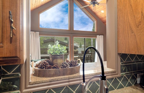 La cocina ha sido actualizada con azulejos con motivos de granito y montaña. El comedor y la mesa son enormes, con capacidad para un grupo de 10 personas, con la mesa del rincón del desayuno justo al otro lado para asientos adicionales.