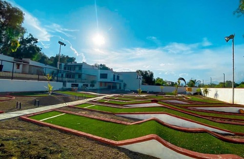 Mini Campo de Golf: 1200mts2, 18 hoyos con diferente complejidad, Acogedora sala de estar, cuenta con los accesorios para el juego.