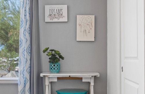 Disfrute de las noches al aire libre junto a una cabaña cubierta con TV al aire libre y equipo de música junto a la piscina con vistas impresionantes. La propiedad respalda a BLM land, por lo que las vistas son impecables de día y de noche. Hay una puerta en la parte trasera con acceso directo a millas de senderos para caminatas / ciclismo.