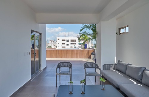 Deléitese con los muebles y la decoración ultra lujosos, una habitación cómoda, modernas salas de estar y comedor, cocina totalmente equipada, barra de desayuno y área de lavandería en un edificio cerrado de reciente construcción, ubicado en el sector más céntrico y exclusivo de Santo Domingo.