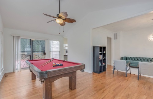 Este alojamiento de 4 dormitorios y 2.5 baños cuenta con un comedor, chimenea y aire acondicionado. Pon a prueba tus habilidades jugando al billar, o disfruta del wifi gratis y de la televisión. El cuarto de baño incluye un secador de pelo, toallas y papel higiénico. La cocina está equipada con horno, placa de cocina y frigorífico, además de cafetera y tetera, hervidor eléctrico y máquina de hielo. Podrás viajar con poco equipaje, porque tendrás una lavadora y una secadora a tu disposición. Otras comodidades incluyen ropa de cama, una tabla de planchar, un teléfono y calefacción.