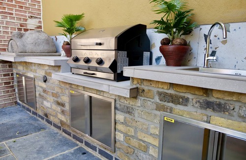 En esta casa de vacaciones de 405 m² podrás relajarte en el jardín o tomarte algo en la bañera de hidromasaje, ¡y no te olvides de servicios como los muebles de exterior! Para cambiar un poco, entra y disfruta del wifi, de la televisión y del reproductor estéreo.