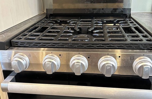 A full kitchen with stove, burners, microwave, and everything you need to cook with ease.