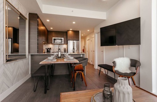LUXURY FURNISHED CONDO WITH VIEWS 1 BED & DEN! DT KELOWNA Se encuentra en North End. LUXURY FURNISHED CONDO WITH VIEWS 1 BED & DEN! DT KELOWNA ofrece alojamiento, con Balcón/Terraza, Aire acondicionado, Estacionamiento, Entre otras comodidades. Estas características Apartamento Balcón/Terraza, Aire acondicionado, Estacionamiento, Para que su estadía sea cómoda.