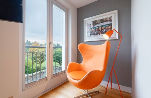 Relájate en el jardín o tómate algo en el balcón o patio de este apartamento. Cuando entres, conéctate al wifi o relájate frente a la televisión por cable o satélite (dispone de servicios de streaming). También hay un altavoz inteligente, un reproductor estéreo y una biblioteca de música.