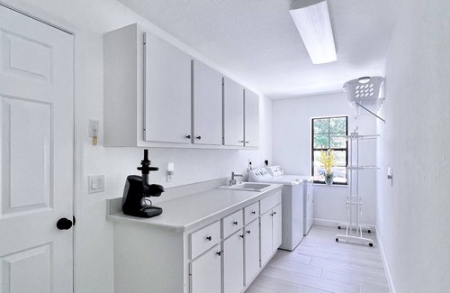 Este alojamiento de 3 dormitorios y 2.5 baños cuenta con una zona para barbacoas, aire acondicionado, escritorio y dispensador de agua. El cuarto de baño incluye un secador de pelo, toallas y papel higiénico. La cocina está equipada con horno, placa de cocina y frigorífico, además de cafetera y tetera, microondas y utensilios de cocina. Y como podrás aprovechar la lavadora y la secadora, no te hará falta llevar mucho equipaje.