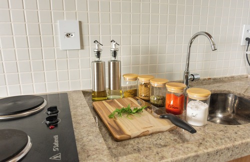 The space is perfect for a comfortable and convenient stay. The kitchen is fully equipped, including basic spices for your recipes. For your entertainment, we have two TVs with Netflix access, one in the living room and one in the bedroom, and a 12,000 BTU air conditioner to keep the space always pleasant. You will also have free Wi-Fi to stay connected.