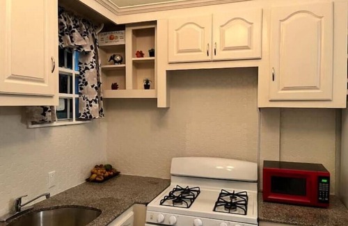 Prepara una comida casera en la cocina, equipada con horno, placa de cocina y frigorífico, además de cafetera y tetera, microondas y utensilios de cocina. Disfruta del wifi y de la televisión. El cuarto de baño incluye toallas, papel higiénico y jabón. Otras comodidades de este alojamiento de 1 dormitorio y 1 baño incluyen ropa de cama, una tabla de planchar, servicio de limpieza disponible a petición y aire acondicionado.