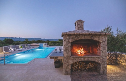 Villa de lujo Jele *****, ubicada en un bello entorno, a 3 km del mar en un pequeño y pintoresco pueblo de Sv. Vid - Dobrinj, un oasis verde para unas vacaciones tranquilas y relajadas. Toda tu familia lo disfrutará. La villa está diseñada como un complejo separado con piscina privada, solárium y jardín.