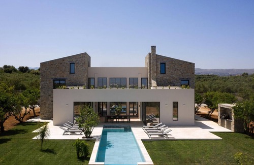 Welcome to Villa Liváni, nestled in the tranquil suburb of Skaleta near Rethymno city, just 1.1km from the beach, offering a seamless fusion of countryside tranquility and easy access to vibrant island life, a mere 15-minute drive away. Designed to cater to discerning guests seeking unparalleled comfort and sophistication, this villa seamlessly marries Cretan tradition with modern luxuries.