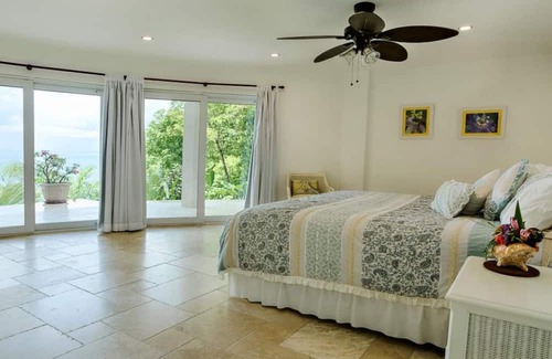 The location is private and gated, with only a few houses around. Tranquil, quiet Trou Rolland Bay and Marigot Bay’s lively restaurants, shopping, and activities are only a two-minute drive over the ridge.
