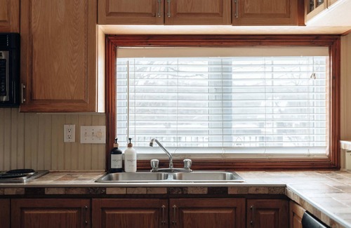 Casa de vacaciones en un lago con cocina y balcón