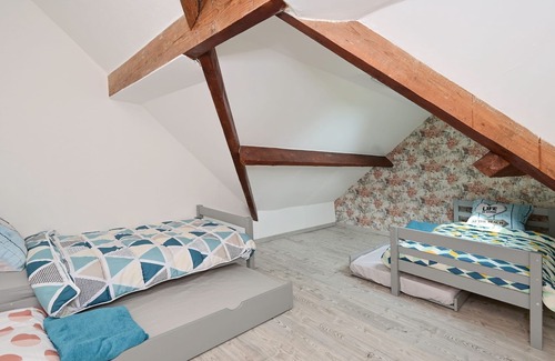 In Sully-sur-Loire, we offer this charming 105 m² house for rent, which can accommodate up to 10 travelers. It features a lovely 22 m² living room, a fully-equipped kitchen, four bedrooms, a bathroom and a 940 m² garden. Wifi, bed linen and towels included, we're waiting for you!