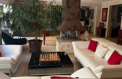 En este alojamiento, podrás relajarte en la piscina privada o tomarte algo en el jardín. Además, también podrás disfrutar de un porche o patio y de muebles de exterior. En cuanto al interior, puedes poner a prueba tus habilidades jugando al futbolín y al tenis de mesa, o disfrutar del wifi gratis, de la televisión por satélite o cable y del reproductor de DVD.