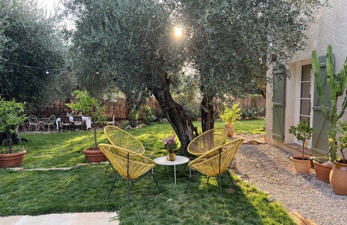 Dans un cadre enchanteur, jolie propriété au calme. Maison discrètement mitoyenne, dont la piscine privative (ouverte de avril à début novembre) est implantée au milieu d'oliviers.