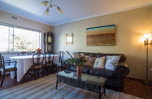 Piso clásico amplio y luminoso con toques modernos, adecuado para 2 parejas compartiendo, o una pareja con 2 niños. El dormitorio principal y el salón ofrecen vistas panorámicas de la magnífica Table Mountain. Ubicado en el centro de Upper Gardens, a poca distancia del exclusivo centro comercial Gardens y del autobús MyCiti. Incluye estacionamiento seguro fuera de la calle también. Está orientado a la montaña, por lo tanto, es tranquilo sin ruido de tráfico.