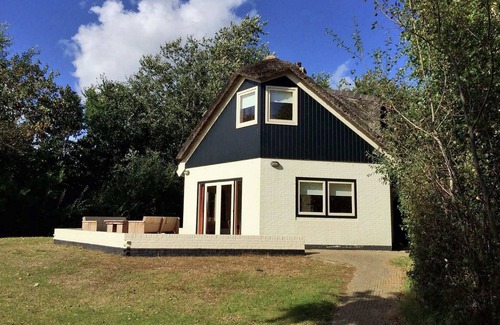 Hay una amplia terraza con un bonito banco de madera, un lugar ideal para sentarse y relajarse. A los niños les encantará y hay muchos senderos y dunas interesantes para explorar en las inmediaciones. Tampoco echarán de menos la casita de madera para jugar. Esta villa ofrece todo el lujo que pueda desear. Desde el salón, podrá disfrutar de las vistas al maravilloso entorno verde gracias a sus amplios ventanales. Hay una preciosa estufa de leña en un rincón del salón, un lugar acogedor para sentarse en las noches más frías.