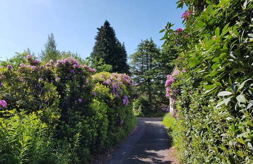 La casa una vez tuvo su propio terreno, río, granja, invernadero, establos y garajes para una multitud de vehículos. El río se acerca por escalones profundamente hundidos que son casi túneles a través de la maleza y después de un corto salto más allá de las vacas puede encontrar las anguilas y la trucha de mar que a mis hijos les encantaron. Los acantilados aquí son particularmente dramáticos y totalmente inesperados, formados por un afloramiento de arenisca "Kirklinton" de grano muy fino y rojo anaranjado. Los martín pescador viven aquí y, si tienes suerte, puedes ver un destello azul mientras te diriges a la mini isla a bajo flujo.