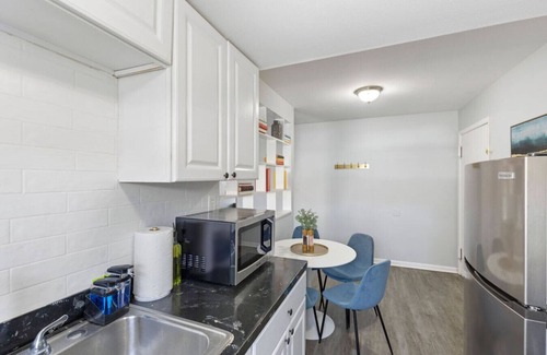 La cocina está equipada con horno, placa de cocina y frigorífico, además de cafetera y tetera y microondas. Conéctate al wifi gratis, o relájate frente a televisión. Y gracias a la lavadora y la secadora, podrás viajar con poco equipaje. Otras comodidades de este alojamiento de 1 dormitorio y 1 baño incluyen ropa de cama, aire acondicionado, calefacción y una mesa de comedor.