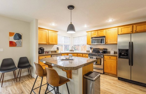 Al instalarte en este alojamiento de 4 dormitorios y 2.5 baños, encontrarás una sala de estar, un comedor, chimenea y aire acondicionado. El cuarto de baño incluye toallas, papel higiénico y jabón. La cocina está equipada con horno, frigorífico y lavavajillas, además de cafetera y tetera, hervidor eléctrico y máquina de hielo. Y gracias a la lavadora y la secadora, podrás viajar con poco equipaje.