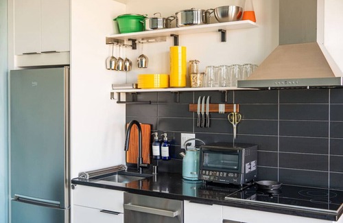 Prepara una comida casera en la cocina, equipada con horno, placa de cocina y frigorífico, además de cafetera y tetera, utensilios de cocina y tostadora. Podrás viajar con poco equipaje, porque tendrás una lavadora y una secadora a tu disposición. Otras comodidades incluyen ropa de cama, aire acondicionado y calefacción.