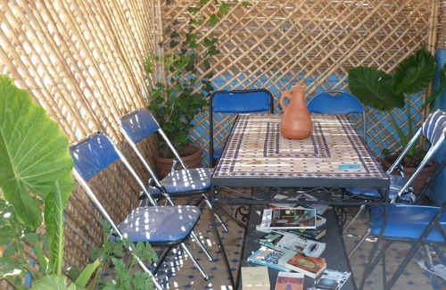 La casa se encuentra a mitad de camino por un pequeño callejón polvoriento, por lo que está justo en el corazón del verdadero Marruecos. Es antiguo, tradicional y de estilo rústico con paredes de colores y encaladas en todas partes. La casa cuenta con todas las comodidades, incluyendo Wifi gratuito en toda la casa y en la terraza de la azotea. Tenga en cuenta que esta casa no está en una zona turística y sus vecinos serán marroquíes. Esta casa se adapta a alguien a quien le gustaría estar inmerso en la cultura marroquí.