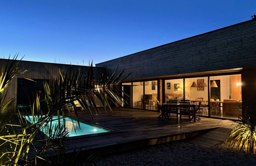 "La Villa Agapanthes", casa 4 estancias 150 m2. Espacioso y luminoso, con mobiliario muy confortable y moderno: salón 60 m2, grande con TV y TV digital (pantalla plana). Salida a la terraza, a la piscina. 1 dorm. con 1 cama de matrimonio (160 cm, 200 cm de longitud), ducha, doble lavabo y persianas eléctricas. Salida a la terraza, a la piscina, orientación sur. 1 dorm. con 2 camas (90 cm, 200 cm de longitud), persianas eléctricas. Salida al jardín, a la terraza, orientación oeste. 1 dorm. con 1 cama de matrimonio (160 cm, 200 cm de longitud), persianas eléctricas. Salida al jardín, a la terraza, orientación oeste. Cocina abierta (horno, lavavajillas, 4 Placas de inducción, tostadora, hervidor de agua eléctrico, microondas, congelador, cafetera eléctrica, Cápsulas de café (Nespresso) extra, horno Raclette, isla de cocina) con mesa de comedor. Baño/ducha, WC separado, doble lavabo. Calefacción eléctrica. Terraza grande 100 m2, orientación sur, 2 terrazas pequeñas 7 m2, orientación oeste. Muebles de terraza, barbacoa (portátil), tumbonas (4). El alojamiento dispone de: lavadora, secadora, plancha, trona, cuna hasta 2 años, secador de pelo. Internet (Wifi, gratis). A tener en cuenta: casa para no fumadores. Permitido máximo 1 mascota / perro. Detector de humo. Oferta de un particular según el art. 155, IV del CGI.
