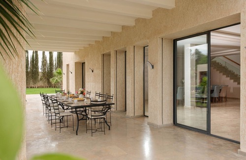 Ubicada en una finca privada segura en la Route de Ouarzazate, Villa Marilah ofrece 550 m² de interiores bellamente diseñados y amplios espacios exteriores en un jardín paisajístico de 4.000 m². Cuatro dormitorios cuentan con camas king-size y dos ofrecen camas gemelas, todos con baños en suite y acceso a terrazas o balcones exteriores.