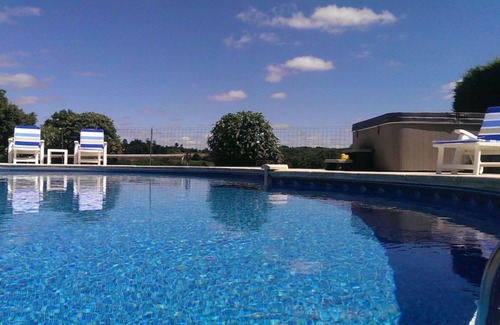 Relájate en la piscina climatizada de esta casa de campo, que cuenta con un jardín y un porche o patio, o tómate algo en la bañera de hidromasaje. Cuando entres, conéctate al wifi gratis o relájate frente a la televisión por cable o satélite (dispone de videoteca). También hay videojuegos, un reproductor de DVD y un reproductor estéreo.