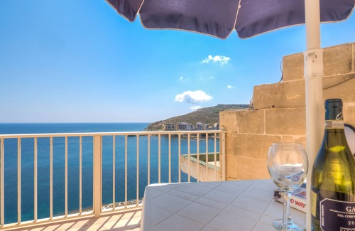 ¡Ideal para los "Jóvenes de corazón" con sesenta y nueve escalones que conducen al cielo! Este apartamento bien amueblado disfruta de magníficas vistas de Marsalforn Bay desde una gran terraza con una habitación doble y una habitación con literas, junto con cocina equipada / comedor y baño con ducha. ¡Los niños se alojan sin cargo adicional! Gran lugar para parejas de buceo. Apartamento en primera línea de mar situado a pocos minutos de la playa.