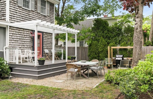 Pase de playa residencial incluido (15 playas en un radio de 15 millas gratis). Gran casa, excelente ubicación, hermoso barrio frondoso, justo en el medio del histórico pueblo Cotuit. Recorra estas vacaciones en el mercado local, el restaurante, la playa de Robe and Loop, el puerto deportivo, el juego de béisbol o simplemente por el placer de ver jardines más hermosos y casas históricas. La casa principal es una pieza de la historia estadounidense real de 1901 'Montgomery Ward kit house', y fue renovada con sensibilidad y amueblada con una elegancia sobria. Si necesita más espacio, debe alquilar nuestra casa de campo de un dormitorio en un terreno para vecinos por $ 180 adicionales por noche (para 4). Extremadamente encantador en un espacioso jardín, brinda comodidad adicional para una gran fiesta (HomeAway # 3805103). La casa y la casa de campo cuentan con cocinas y áreas de comedor completamente modernizadas y re-conceptualizadas (trabajos terminados en la primavera de 2014). La casa tiene una terraza y un porche para disfrutar del periódico de la mañana o un aperitivo antes de noche, mientras que la casa tiene un patio de ladrillo bajo un elegante pérgola blanco. Ambas estructuras tienen interiores acogedores que combinan elementos nuevos y clásicos en un todo armónico. Todas las vacaciones deben ofrecer al turista una amplia oportunidad para conseguir que el descanso s / que tanto se merece, y usted encontrará todos los dormitorios señas a hundirse entre las sábanas. Los niños más pequeños podrán disfrutar de las literas o el desván del sueño en la casa principal, y no se olvide que hay una cuna para los más pequeños - con una mesa para cambiar pañales conveniente - en el dormitorio principal (pero no en la misma habitación ¡Mamá y papá!). Las familias con niños encontrarán una variedad de juegos de mesa, juegos de Duplo, libros y películas infantiles clásicas. La casa de juegos y el columpio personalizados en esta tranquila calle también serán apreciados. No hace falta decir que se incluyen una gran variedad de artículos de playa, artículos deportivos, juguetes de playa, bicicletas e incluso dos kayaks. Por último, no olvidemos las playas con poca gente de Cotuit (que transmiten esa sensación de "privado"), ni debemos olvidar las oportunidades de compras y restaurantes en Mashpee Common.