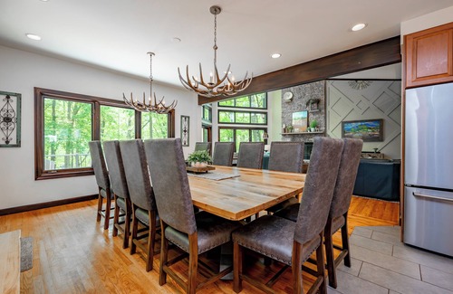 Una casa de colección de firmas! Como su nombre lo indica, un tesoro de recuerdos nuevos y emocionantes espera justo dentro de la puerta principal de Memory Maker. Las actividades abundan en una piscina cubierta de 34 'por 13', un teatro de diseño profesional con pantalla HD de 12 pies, suscripción a boletos de la NFL y asientos en el estadio para veinte personas, sala de vapor, sauna y sala de ejercicios con calidad de club de salud (incluida una elíptica caminadora, bicicleta y pesas). ¡Además, esta casa cuenta con una cocina de diseño a la que podrás voltear! Con dos edificios situados cerca, esta magnífica propiedad es perfecta para grupos grandes. Con seis habitaciones en la casa principal y dos más en la casa de la piscina, toda su tripulación tiene espacio para reunirse para divertirse, y juegos y espacio para expandirse cuando se necesita paz y tranquilidad. Cuando es hora de pasar la noche, las ocho habitaciones cuentan con lujosas camas tamaño king, cinco son suites principales y tres de ellas cuentan con chimeneas de gas y balcones privados. Te encantará aquí!