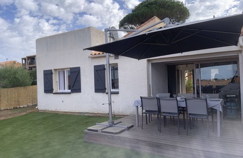 Minivilla adosada climatizada, terraza y jardín, vista al mar Se encuentra en Marine de Saint Ambroggio. Minivilla adosada climatizada, terraza y jardín, vista al mar ofrece alojamiento, con Estacionamiento, Area designada para fumar, TV, Entre otras comodidades. Estas características Apartamento Estacionamiento, Area designada para fumar, TV, Para que su estadía sea cómoda.