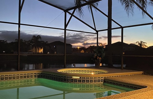 Modern 5 bedroom villa with private pool/ lake view / 30 mins from Disney Se encuentra en Crescent Lakes. Modern 5 bedroom villa with private pool/ lake view / 30 mins from Disney ofrece alojamiento, con Bañera de hidromasaje, Cocina, Piscina, Entre otras comodidades. Estas características Villa Bañera de hidromasaje, Cocina, Piscina, Para que su estadía sea cómoda.