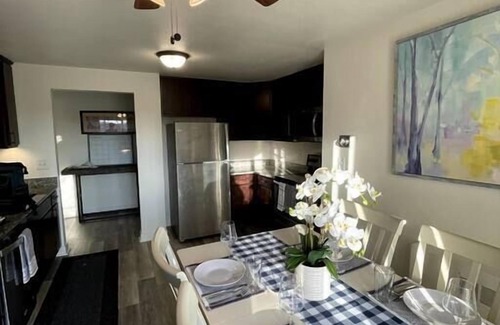 Este alojamiento de 2 dormitorios y 2 baños cuenta con una sala de estar, chimenea y aire acondicionado. Conéctate al wifi gratis, o relájate frente a la televisión por cable o satélite. El cuarto de baño incluye un secador de pelo, toallas y papel higiénico. Prepara una comida casera en la cocina, equipada con horno, placa de cocina y frigorífico, además de cafetera y tetera, microondas y utensilios de cocina. Y gracias a la lavadora y la secadora, podrás viajar con poco equipaje. Otras comodidades incluyen ropa de cama, una tabla de planchar, calefacción y una mesa de comedor.