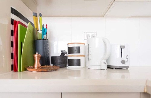 Our place is a modern one-bedroom apartment with a five-seater sofa, HD TV, dining table and fully equipped kitchen with dishwasher, kettle, toaster, juicer and a Nespresso coffee machine. There is a washing machine and dryer inside the laundry space.