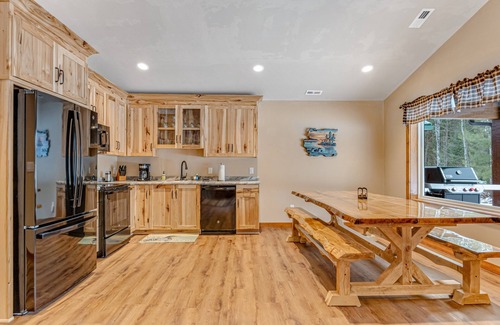 Además de una sauna, esta cabaña para no fumadores cuenta con una bañera de hidromasaje y lavandería. Otras instalaciones incluyen un área para parrillas.
