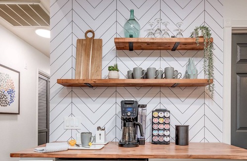 KITCHEN: Fully equipped for cooking, baking and service for 8. Appliances include a new refrigerator with in-door ice and filtered water. There is a dishwasher, air fryer, Instant Pot/slow cooker, and a beverage bar with coffee maker and wine fridge. Seating for six at the dining table plus three at the kitchen bar.