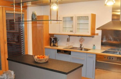 Casa Libelle is located on two floors of a large home with gorgeous views of the mountains from every room. You will feel right at home with the warm fireplace, private sauna and super comfy beds. With over 200 square meters of tastefully decorated living space, along with three bedrooms and three full bathrooms, there is plenty of room to relax and enjoy your holiday. Our fully equipped modern kitchen has an amazing coffee maker, as well as fondue, raclette and crepe machines. Need some peace and quiet from the kids? Send them downstairs to our well stocked TV / Game room. And don't forget to bring your E car as we have a charging station in the parking lot. There is also a large outdoor locker for storing your bikes and skis.