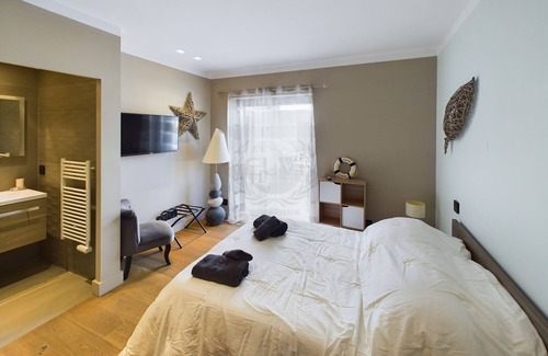 Superb villa in Plan de la Tour of approximately 288 m2 built in 2015 on its flat and wooded plot of approximately 3000 m2 without vis-à-vis and benefiting from unobstructed hill views. It comprises: entrance, dining room and kitchen, living room with fireplace, laundry room, separate toilet, 4 bedrooms each with their own shower rooms. Thalassotherapy area with indoor pool, jacuzzi, hammam. Upstairs: 1 master bedroom with shower room / bathroom and its terrace. Pool house, outdoor kitchen, heated 12x5 m2 pool, boules court, garage of approximately 40 m2. Exceptional property.