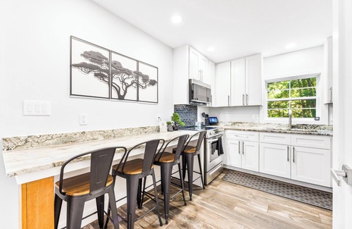 Al instalarte en este alojamiento de 2 dormitorios y 1.5 baños, encontrarás una sala de estar, un sofá cama, chimenea y aire acondicionado. La cocina está equipada con horno, placa de cocina y frigorífico, además de cafetera y tetera, microondas y utensilios de cocina. Y como podrás aprovechar la lavadora y la secadora, no te hará falta llevar mucho equipaje.