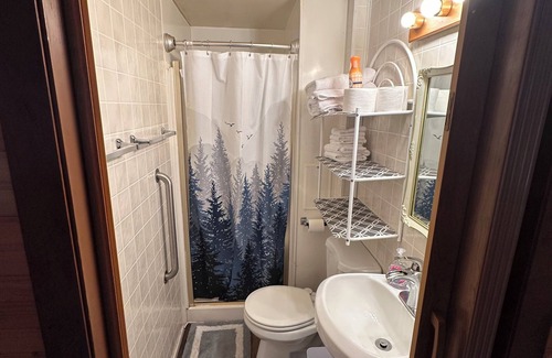 Mackinac es una casa de campo más moderna de 2 dormitorios con paneles de pino nudoso más nuevos y pisos de tablones de vinilo. La cabaña tiene un concepto abierto de cocina, sala de estar y comedor con una ventana panorámica que da al lago. Duerme cómodamente hasta 6 personas con los dos sofás cama / futones en el área de la sala de estar y está totalmente equipado para sus necesidades de vacaciones. Solo traiga sus toallas y ropa de cama favoritas y comience sus vacaciones.