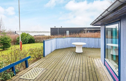 Casa de vacaciones ubicada en lo alto con vistas panorámicas al fiordo de Kolding. Hay una cocina y una sala de estar en una con muebles de diseño. Desde aquí se accede a la terraza con cortavientos. Dos cuartos.