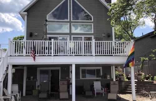Casa de tres pisos recientemente renovada con gran terraza y patio inferior con acceso directo al lago. Los tres niveles tienen vistas espectaculares de la parte más ancha del lago Webster. La planta principal tiene techo de catedral, gran cocina abierta, comedor / sala de estar con chimenea de gas, 1 dormitorio y baño completo. El segundo piso incluye un rincón de lectura con impresionantes vistas al lago, dormitorio principal y baño completo (solo ducha). La planta baja incluye una sala multimedia con una gran televisión de pantalla plana, un sofá reclinable con capacidad para 2 y 1 dormitorio principal grande.