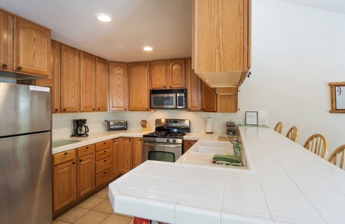 Este alojamiento de 3 dormitorios y 2 baños cuenta con una zona para barbacoas y chimenea. Disfruta del wifi, de la televisión, del reproductor estéreo, de los videojuegos y del reproductor de DVD. Prepara una comida casera en la cocina, equipada con horno, placa de cocina y frigorífico, además de cafetera y tetera, máquina de hielo y microondas. Y gracias a la lavadora y la secadora, podrás viajar con poco equipaje. Otras comodidades incluyen ropa de cama, una tabla de planchar y calefacción.