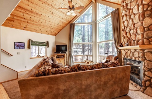 Situada en un acre, la mansión Moose de 1440 pies cuadrados está ubicada a 7000 pies en Tall Pines, entre Flagstaff y Williams, la puerta de entrada al Gran Cañón. Moose Manor está bellamente decorado y amueblado. Cuenta con dos habitaciones King, un altillo con dos camas individuales y un fut����n tamaño queen, un cómodo sofá, además de colchones de aire y un paquete para jugar a pedido. Cuenta con dos baños completos. Cuenta con una cocina totalmente equipada, ropa de cama, todas las comodidades del hogar y algo m��s. Los niños disfrutarán del Rainbow Play Set en la parte posterior, y todos disfrutarán de los hoyos de herradura. O bien, siéntese frente a la gran chimenea de piedra y mire por los ventanales a los árboles y la vida silvestre.